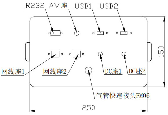 接插件安裝板上標配安裝: RS232 接頭1個、AV座1個、USB接頭2個、網線座2個、DC座2個、氣管快速接頭PM06接頭1個