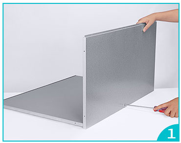 第一步:拿出底板擺放平,用背板對準兩個孔位,拿出螺絲對準孔位擰緊 第二步:拿出左側板對準孔位擰上螺絲(共4顆)